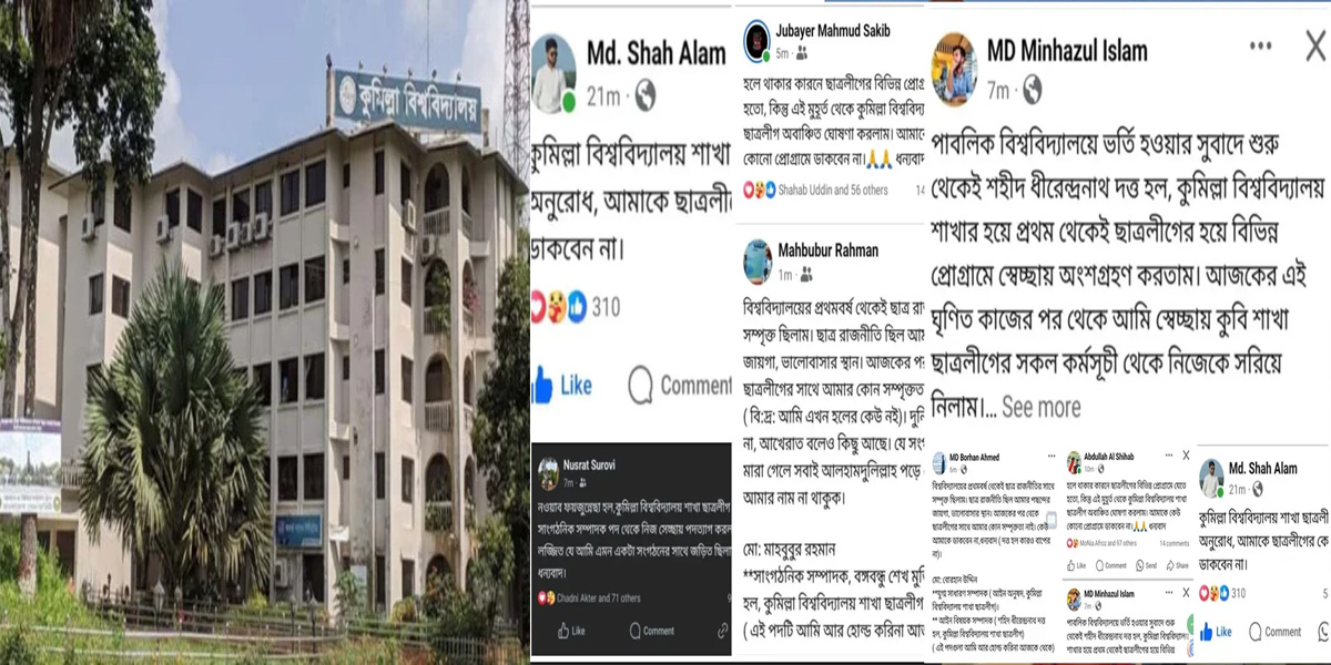 সোমবার (১৫ জুলাই) রাত ১০টার পর সামাজিক যোগাযোগ মাধ্যম ফেসবুক পোস্টে বিশ্ববিদ্যালয়ের বিভিন্ন ছাত্রলীগ নেতাকর্মীরা এ ঘোষণা দেন। এ রিপোর্ট লেখা পর্যন্ত অবাঞ্ছিত ও পদত্যাগের ঘোষণা অব্যাহত রয়েছে।