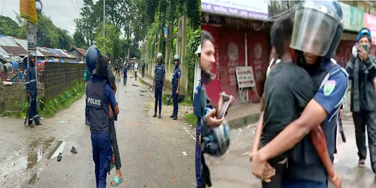 বৈষম্য বিরোধী ছাত্র আন্দোলনের সময় দুর্বৃত্তদের গুলিতে আহত হয়ে মাটিতে লুটিয়ে পড়ে এক শিশু। এ সময় উৎসুক জনতা দর্শকের ভূমিকা পালন করলেও এক পুলিশ সদস্য শিশুটিকে বুকে জড়িয়ে হাসপাতালে নিয়ে যান।