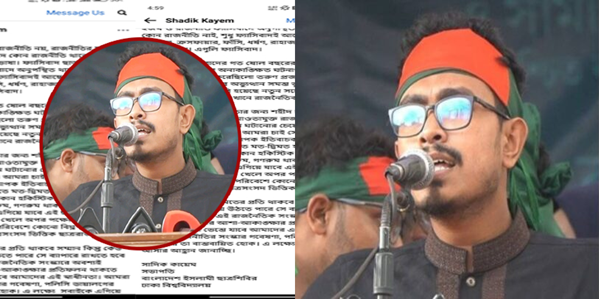 পোস্টের শেষে পরিচয় লেখা হয়, ‘সাদিক কায়েম, সভাপতি, বাংলাদেশ ইসলামী ছাত্রশিবির, ঢাকা বিশ্ববিদ্যালয়’।