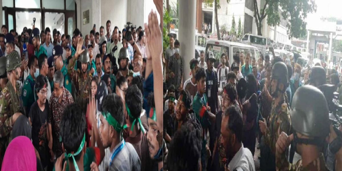 আইনশৃঙ্খলা বাহিনীর সদস্য এবং বাংলাদেশ সেনাবাহিনীর কর্মকর্তারা শিক্ষার্থীদের শান্ত থাকতে এবং আলোচনার মাধ্যমে সমস্যার সমাধানের আহ্বান জানান।