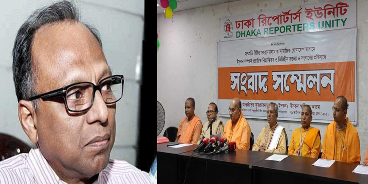 শনিবার (২ নভেম্বর) সকালে ঢাকা রিপোর্টার্স ইউনিটিতে “ইস্কন সম্পর্কে বিভ্রান্তিকর বক্তব্যের প্রতিবাদ” শীর্ষক সংবাদ সম্মেলনে ইস্কন বাংলাদেশের নেতৃবৃন্দ এসব কথা বলেন।