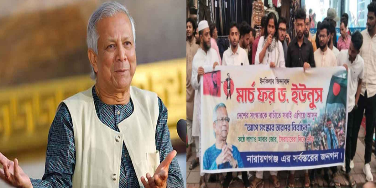 নারায়ণগঞ্জে ‘মার্চ ফর ড. ইউনূস’ মানববন্ধন কর্মসূচি অনুষ্ঠিত হয়েছে।