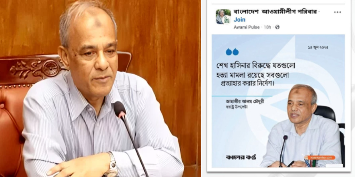 বাংলাফ্যাক্ট জানিয়েছে যে স্বরাষ্ট্র বিষয়ক উপদেষ্টা লেফটেন্যান্ট জেনারেল (অব.) জাহাঙ্গীর আলম চৌধুরী শেখ হাসিনার বিরুদ্ধে সকল হত্যা মামলা প্রত্যাহারের নির্দেশ দেননি এবং কালের কণ্ঠ এই শিরোনামে কোনও সংবাদ বা ফটোকার্ড প্রকাশ করেনি।