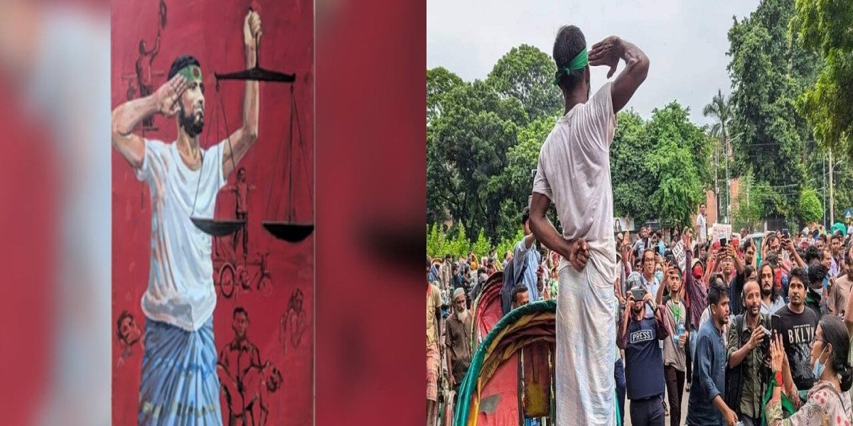 রিকশাচালকের ছবি আঁকা ২০১৯–২০ সেশনের চারুকলা বিভাগের শিক্ষার্থী মেহেদী হাসান শুভ্র বলেন, “এটি একটি ভুল বোঝাবুঝি। আমার অনুপ্রেরণা ছিল সুপ্রিম কোর্ট প্রাঙ্গণে থাকা ‘লেডি জাস্টিস’-এর মূর্তি, যার হাতে দাঁড়িপাল্লা থাকে। আমি রাজনীতির অনুপ্রেরণায় এটা করিনি। বরং জুলাই আন্দোলনের প্রতি সমর্থন জানিয়ে, মানুষের হাতে ন্যায় প্রতিষ্ঠার বার্তা দিতে চেয়েছি। এতটা প্রতিক্রিয়া আশা করিনি।”