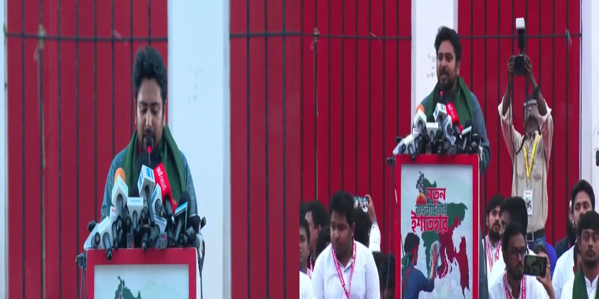 কেন্দ্রীয় শহীদ মিনারে ২৪ দফা ইশতেহার ঘোষণা করেন জাতীয় নাগরিক পার্টির আহ্বায়ক নাহিদ ইসলাম।