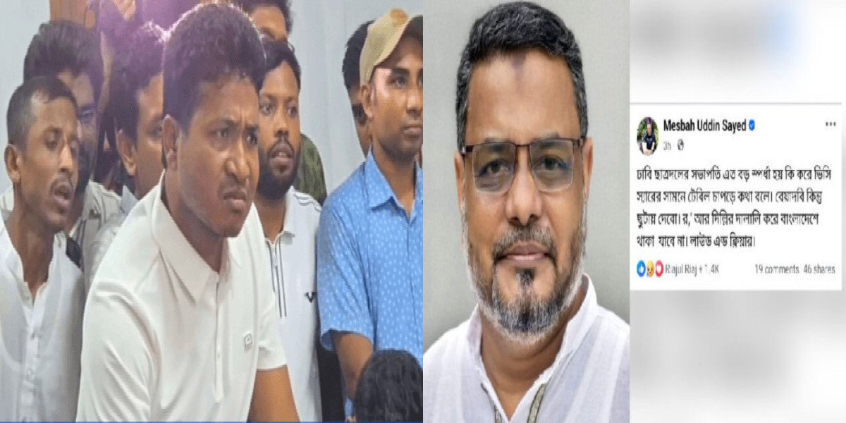 সাঈদ ফেসবুকে লিখেছেন, ‘ঢাবি ছাত্রদলের সভাপতির এত বড় স্পর্ধা হয় কী করে, ভিসি স্যারের সামনে টেবিল চাপড়ে কথা বলে। বেয়াদবি কিন্তু ছুটায় দেব। ‘র’ আর দিল্লির দালালি করে বাংলাদেশে থাকা যাবে না। লাউড অ্যান্ড ক্লিয়ার।’